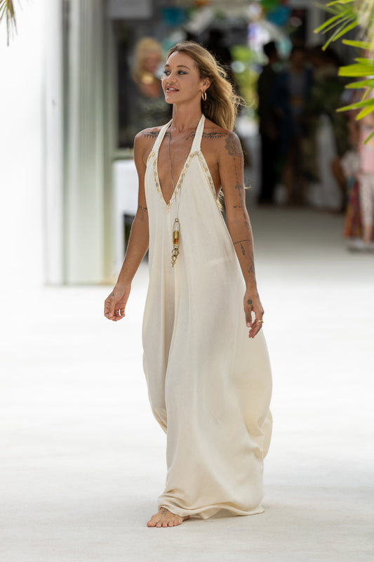 HORIZON MAXI DRESS - SHELL EMBROIDERED SAND