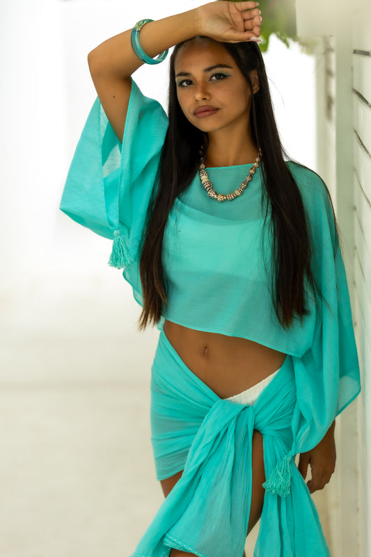 HORIZON CROP TOP - TURQUOISE COTTON